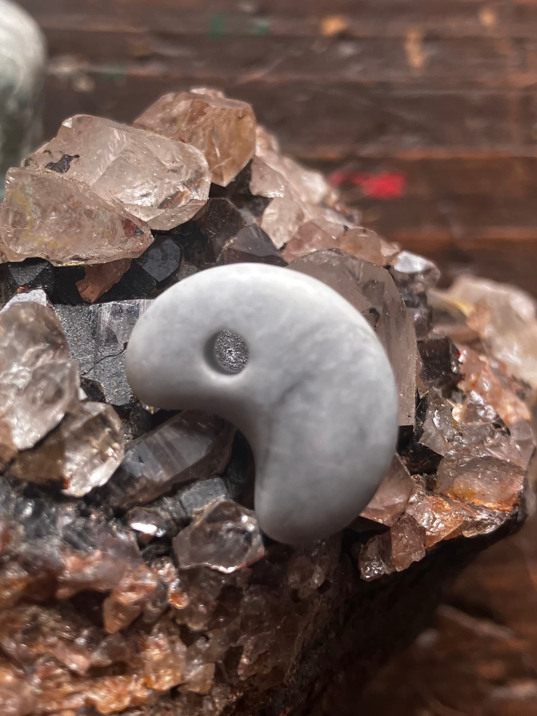 白く落ち着いた風合いのヒスイです ほとんど微妙ですが全体に紫色を 帯びています。 強く主張するよというより静かに寄り添う ような印象があります。 日常の中で自然に身に着けられる勾玉 に仕上がりました。 気軽に手に取っていただけたらと思います。 サイズ縦18mm横13.5mm厚5mm